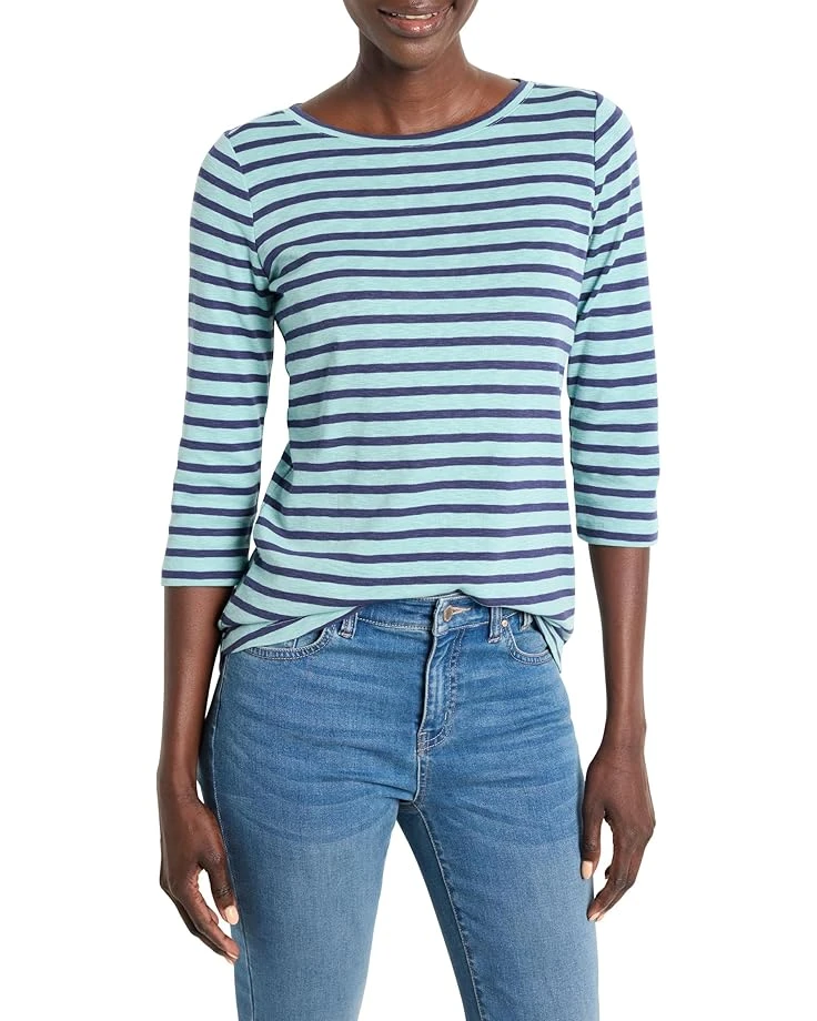 2 reviews for NIC+ZOE 3/4 Sleeve Stripe Boat Tee | Shirts & Tops