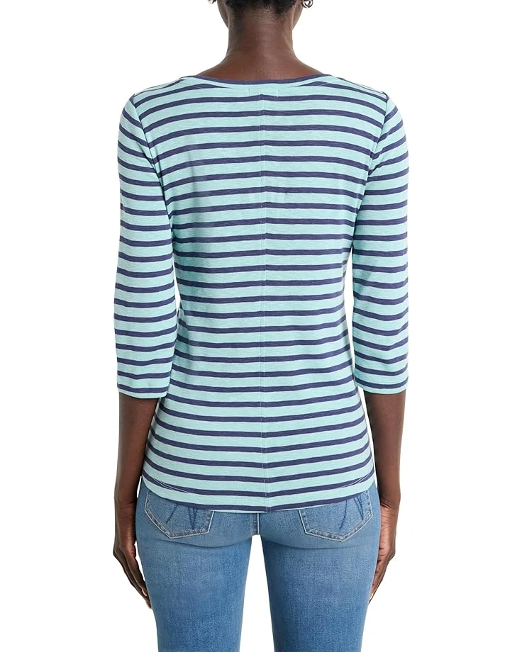 - Adorned with a striped pattern, the NIC+ZOE™ 3/4 Sleeve Stripe Boat Tee gives you a dainty and chic look.