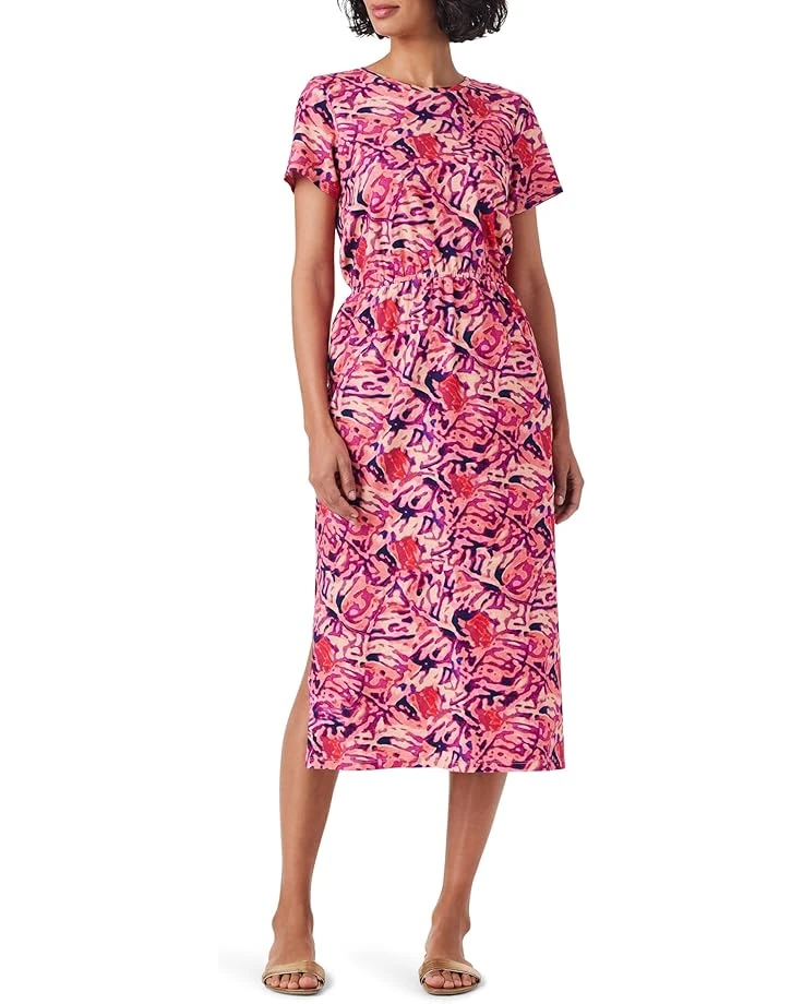 NIC+ZOE Blurred Floral SS Side Slit Midi Dress | Dresses