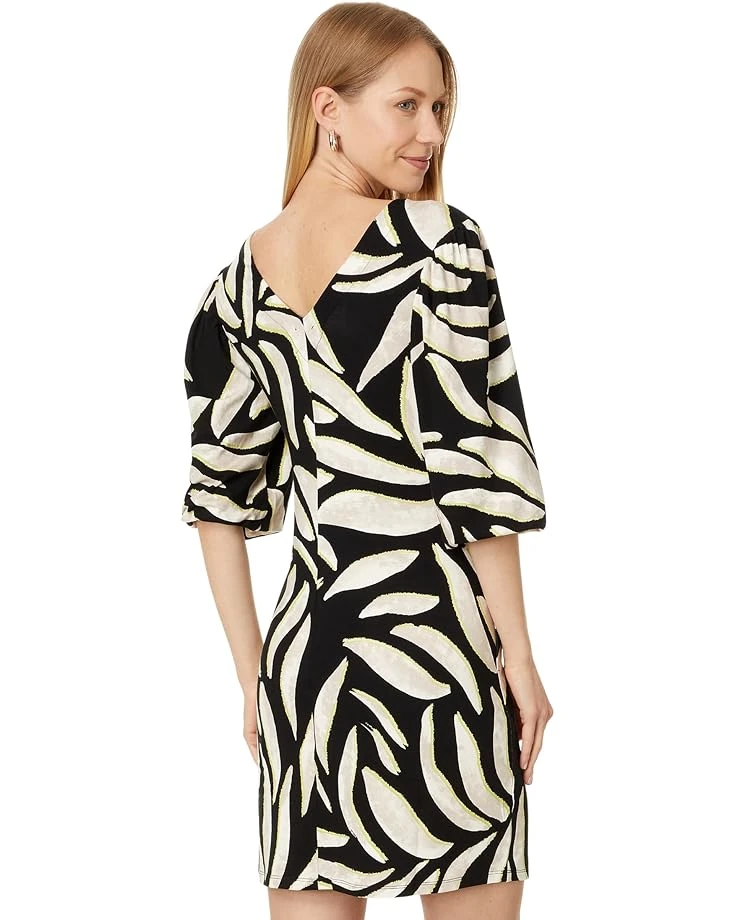 - Botanicals in black and white: the NIC+ZOE™ Breezy Leaves V-Neck Dress comes in the perfect mix of formal and floral. This easy pull-on silhouette was made to look sophisticated yet breezy, exactly like it feels. The pull-on style dress features a simple A-line silhouette, double V-neck head opening front and back, bishop elbow-length sleeves, side seam pockets, and a hem that falls at the knee. The allover leaf printed pattern adds an exquisite touch and the stretch added in construction keeps things comfy and flattering, wear after wear.