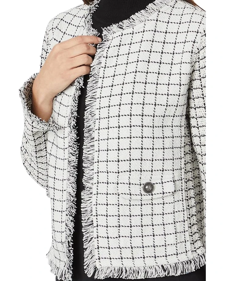 NIC+ZOE Grid Fringe Mix Knit Pocket Jacket | Coats & Outerwear