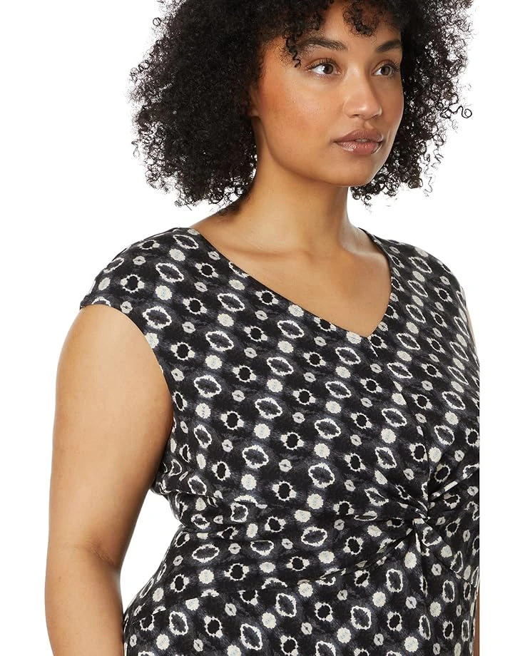 - Feel condifent about your look and keep style on point wearing NIC+ZOE™ Plus Size Midnight Shibori Dress, in striking printed details. The dress features a V-neckline, sleevelss design, back zipper closure, knot detailing on the front, and a knee-length silhouette.