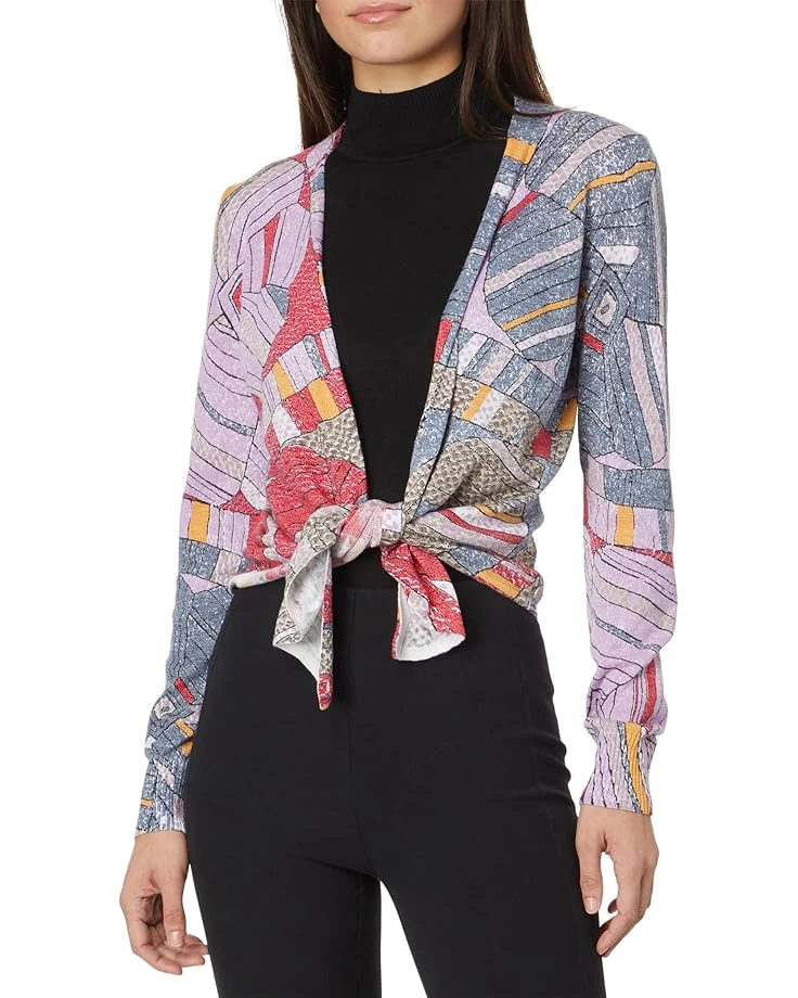 - The NIC+ZOE™ Mosaic Floral 4-Way Cardigan is crafted from slub yarn fabric. This lightweight, open-front cardigan features allover iconic print, long sleeves, and V-neckline. It is designed to be worn open, twisted, tied, or wrapped.