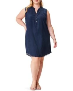 - The NIC+ZOE™ Plus Size Denim Dress is an expertly crafted piece to enhance your natural curves and flatter your figure. The knee-length sheath dress features patch pocket on the left chest, sleeveless construction, and split V-neckline with three-button placket.