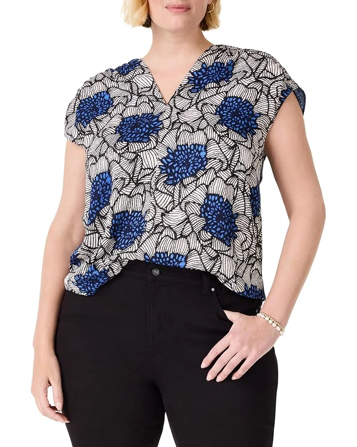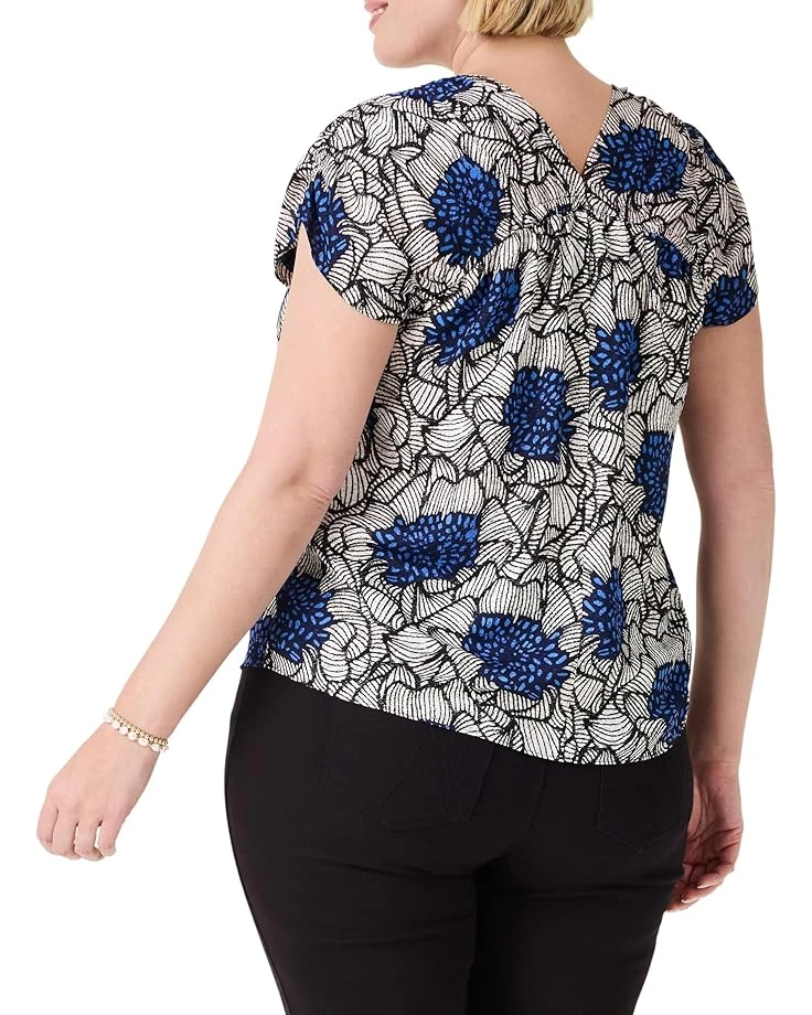 - Stay ahead adorning NIC+ZOE™ Plus: The Petal Bloom Top – where chic meets comfort effortlessly. This printed woven pullover boasts a flattering easy fit, V-neck, and captivating flutter cap sleeves. Crafted from drapey satin chiffon, it’s the perfect blend of style and comfort. The floral print complements any outfit, from denim to formal wear.