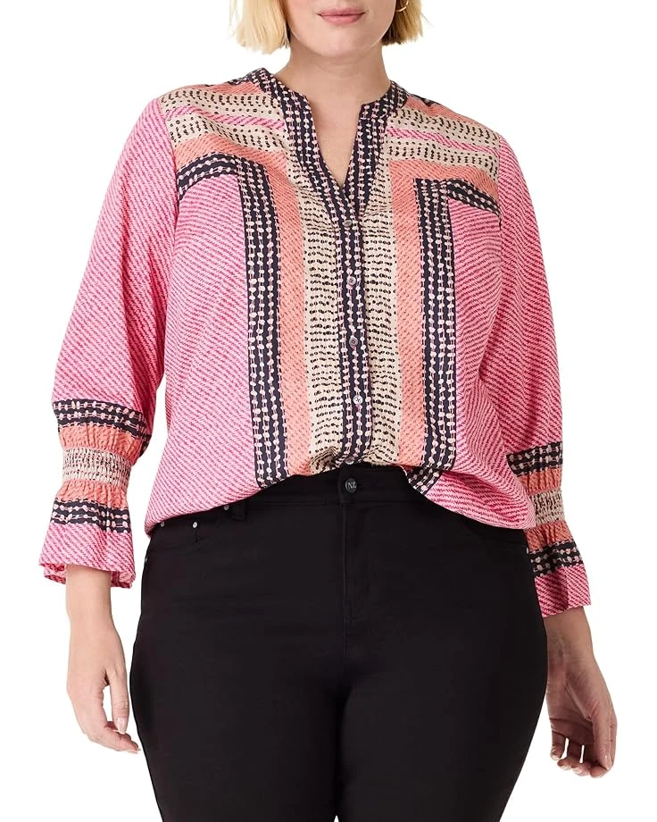 - The NIC+ZOE™ Plus Spotty Stripes Top was inspired by the pattern of zoomed-in textile and that’s reflected in the print’s artisanal quality. This printed top features a unique pullover shape that is super easy but also adds some flair thanks to its elbow-length sleeves with ruffle cuffs and a collarless neckline that drops into a short V. The straight hem of the top adds to its style. Made from 100% cotton, this pullover top is breathable and lightweight for all-day comfort.