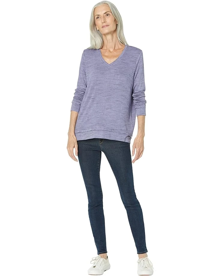 - Add some character to your everyday wardrobe with NIC+ZOE™ Space Dye Raw Edge Top featuring V-neckline and long sleeves.
